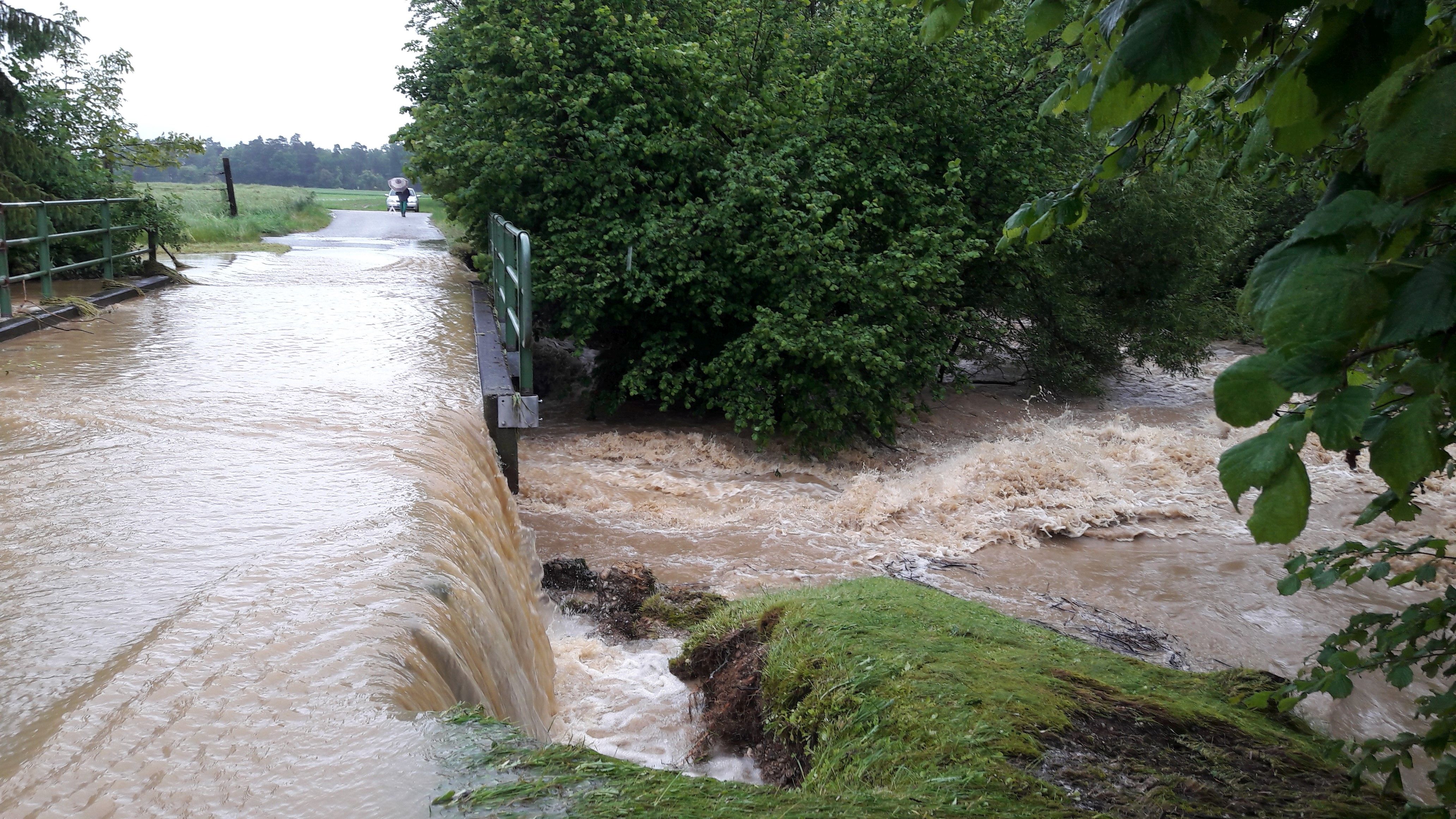 In Kombination mit den noch großteils offenen Ackerflächen bei Mais und Soya kam es zu extremen Abflüssen auf Hanglagen, speziell bei lehmigen Böden. Ab den Morgenstunden wurden im Bezirk Braunau zahlreiche Keller und Straßen überflutet.