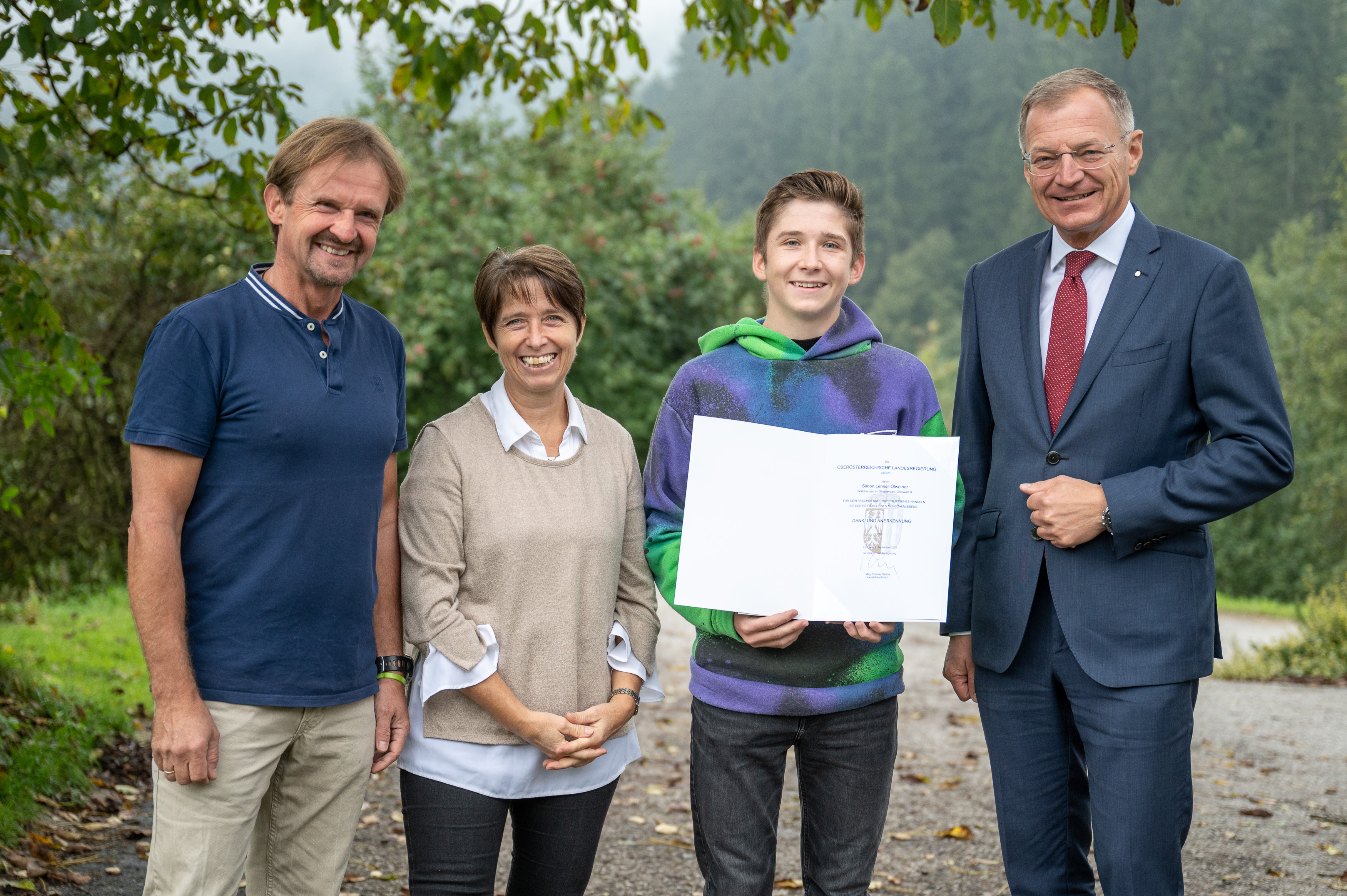 Bildtext: LH Stelzer mit Simon Lehner-Ölweiner und den stolzen Eltern